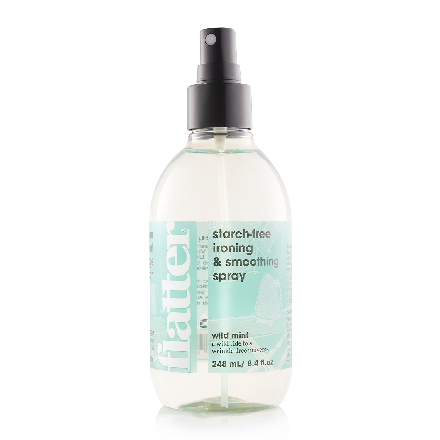 Flatter makes ironing easier. This starch-free smoothing spray relaxes wrinkles and freshens fabrics. It’s flat out fabulous! Use it to freshen fabrics between washings, or spray it on to reduce (and even resist) wrinkles. Spray it on to leave your fabric sleek, soft, and static-free. The mild formulation is super-easy on sensitive skin, and because it’s made with plant derived and renewable ingredients, it won’t harm the environment, either.