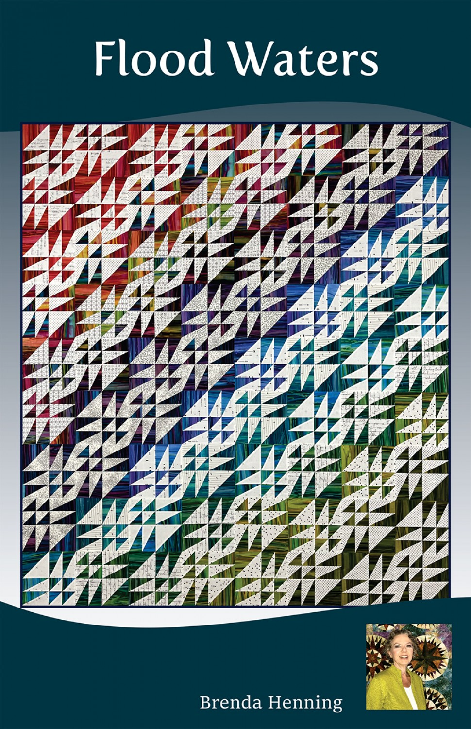 Flood Waters is a dramatic design of half rectangle and half square triangle units that create a cascade of movement across the quilt. A rich rainbow of colors paired with low volume backgrounds make this a refreshing look. This pattern is designed to use BPP HRR Half Rect Ruler to create half rectangle units. A paper template is printed in the pattern, but the ruler makes trimming so much easier. Full color instructions.
