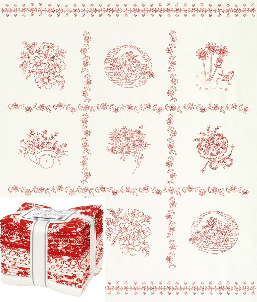 Flowerhouse Daisy's Redwork Fat Quarter Bundle Red 22 Pieces