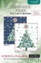 Scrappy snowflakes fall from the sky and onto a delightfully decorative Christmas tree. The star atop the Christmas tree shines in both the day and night versions of this quilt. This quilt is a joy to create and snuggle as you await the first snowfall of the season.