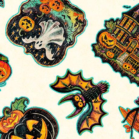 Happy Haunting Halloween Character Toss Cream - 31045-E - QT Fabrics