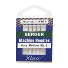 The sharp point of Klassé Serger Needles penetrates all types of fabrics for a professional serged finish. Works with polyester, cotton, rayon, and polyester/cotton blend threads. This Type A Serger Needle is designed for use in electronic multi-purpose sergers that do overlock, cover, safety and mock-safety stitches. Machine should specify 16×231, DBx1, or 2053 system.
