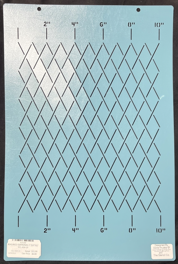 So you have a 4" border that you want to put crosshatching in but then you discover that the standard 1" stencil is too wide. Look no further. Dorie and The Stencil Company have designed a group of grid stencils that are measured on the diameter, not the straight edge. Both the Square grid and the Diamond grid come in a 1", 2" or 3" wide diameter.