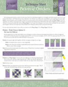 Companion product for Wing Clipper 1 and 2. This technique sheet provides two methods to make a rectangular unit that looks like a flying goose with only one side triangle - like the Pickets on some Picket Fences. In both cases you make your unit oversized and trim to perfection with your Wing Clipper ruler. You can make 10 sizes with the Wing Clipper 1, and 9 sizes with the Wing Clipper 2. Fun block and project suggestions included.