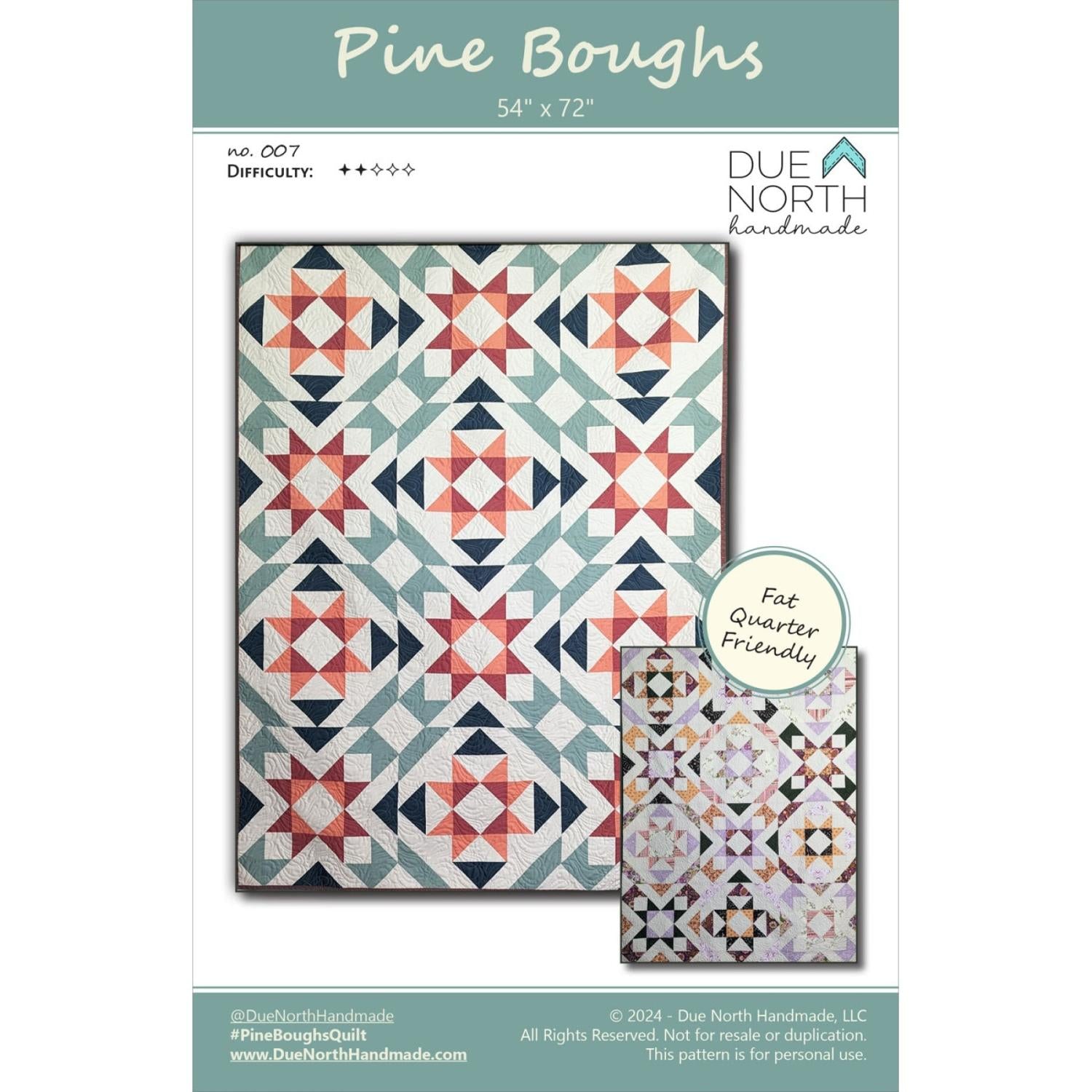Pine Boughs is inspired by groves of ancient white pines and the view as you look to the sky from under their branches. It can be made using yardage or a fat quarter bundle and is appropriate for the advanced beginner and beyond.
