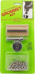 Kit contains everything you need to set grommets in canvas, nylon, mesh, and plastic!