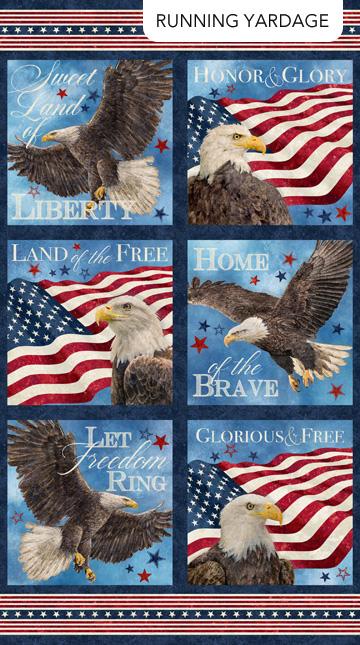 Stars & Stripes 13 Stonehenge Bald Eagle Squares Multi Panel 24" X 40"