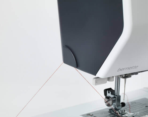 When you get to the end of a seam, the thread has to be tied off to prevent the seam unravelling. Normally, you would do this by making a quick backwards and forwards stitch. This is no longer necessary with the bernette 38, as it has an automatic tie-off function. Simply select the Tie-off button and the end of the seam will be tied off automatically. When you have finished your sewing project, press the button for the automatic thread cutter and you can pull your completed work out from under the needle without having to reach for the scissors.