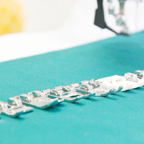The easy-to-engage, integrated Dual Feed makes sure that all kinds of materials are evenly fed from above and below. It’s excellent for sewing several layers or smooth and fine materials – no more slipping of layers or puckering of seams.