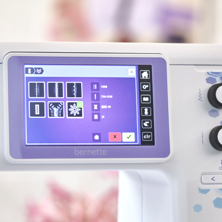 Access the sewing or embroidery tutorials for tips on how to operate your machine or use the creative consultant for advice on the best stitch for your chosen fabric.
