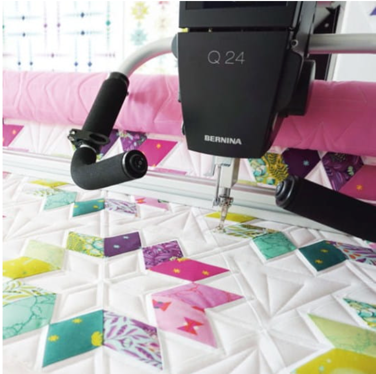 The BERNINA Q 16 PLUS, Q 20 and Q 24 are longarm quilting machines and only differ in the length of the throat space.