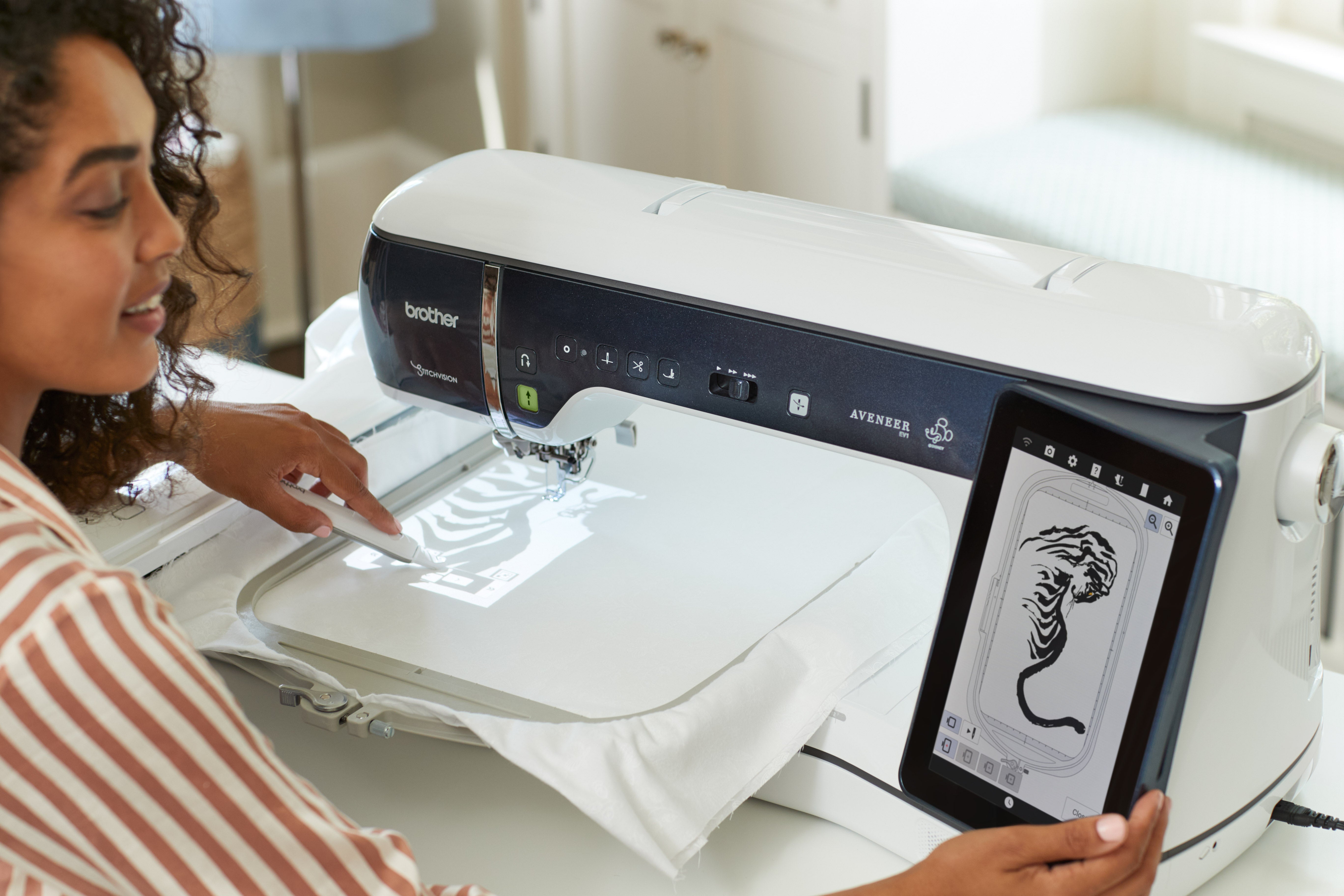 An industry-leading 14.1” workspace (70 square inches) from needle to arm handles everything from large home décor projects to upcycled creations. The large 11 5/8” x 18 1/4” embroidery frame is the largest and most advanced embroidery frame ever offered by Brother. Project stitches or designs onto an 8” x 5” projection area for precise placement and edit directly on fabric, such as moving, resizing, and rotating. When multiple designs are in place, selecting a specific object for editing is easy.