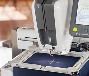 The Entrepreneur One PR1X Single needle embroidery machine has free arm embroidery to easily reach areas like caps, sleeves, and bags and an automatic needle threading system so you can quickly spool your needle.