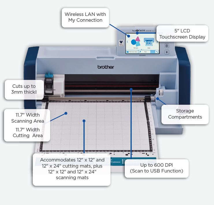 Your ScanNCut DX and your Brother XP sewing machine can now talk to one another. Use the ‘My Connection’ tile on the home screen to utilize the send/retrieve function. This takes the place of having to use a USB to transfer designs between these machines and is exclusive to the SDX330D.