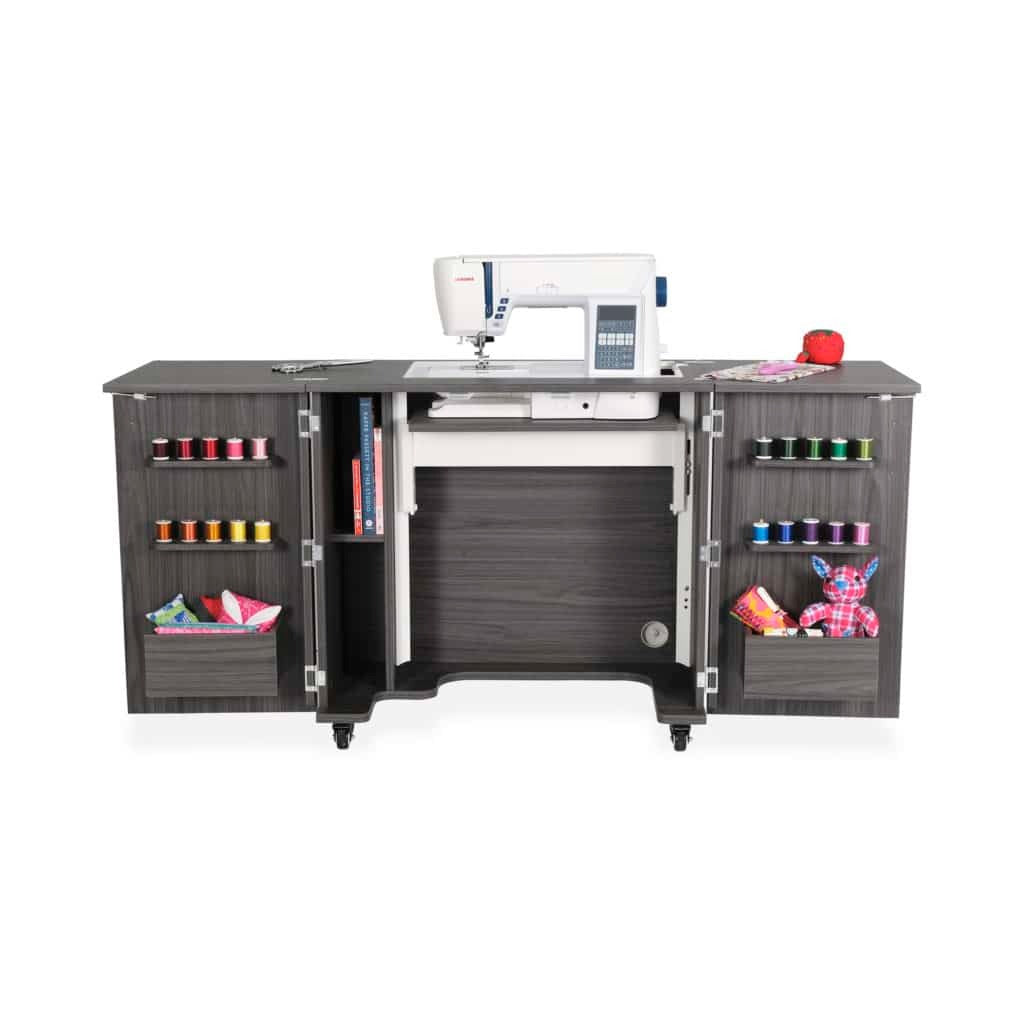 Bandicoot Sewing Cabinet is the signature mid-size sewing cabinet by Kangaroo Sewing Furniture highlighted by a 3 position hydraulic sewing lift for free arm and flat bed sewing, and it’s home-friendly collapsible footprint! Bandicoot features a dual shelving unit, 10 thread spool holders per door, and spacious door cubbies to store sewing notions, scissors and fabric swatches! A timeless design with signature features – let Bandicoot Sewing Cabinet recapture your sewing and crafting passion!