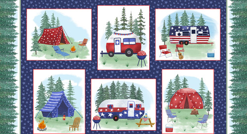 Camp USA Dark Blue Camping Blocks - CAMPUSA-B-3060-77 - Blank Quilting
