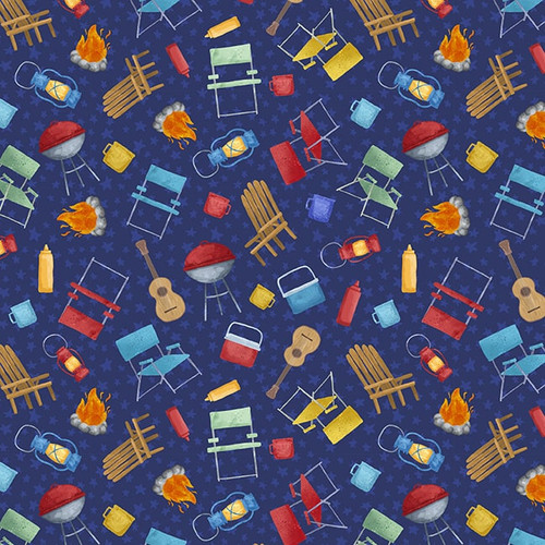 Camp USA Dark Blue Camping Motifs - CAMPUSA-B-3062-77 - Blank Quilting