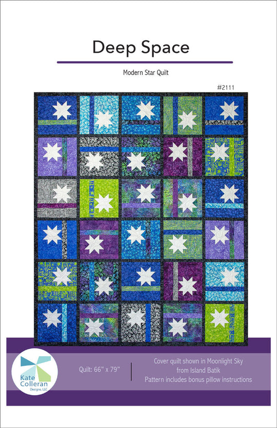 A bright, bold modern star quilt. Uses 3/8 yard of 16 fabrics plus the star fabric and sashing. Lap: 66in x 79in