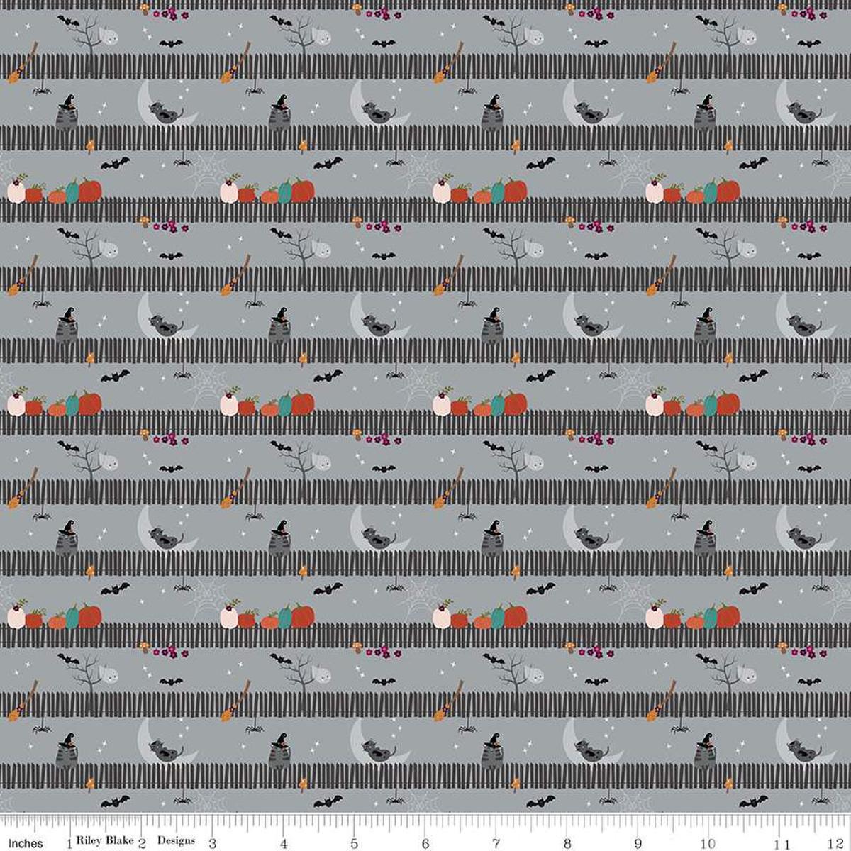 Little Witch Sitting on a Gate Silver - C14564-SILVER - Riley Blake Designs