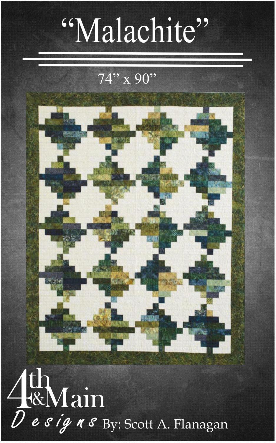 Malachite is based on a series of quilts bases on 2-1/2" x WOF strip packs. Created with a simple block design that when rotated creates the great woven texture in this quilt. Quilt finishes at 74" x 90"