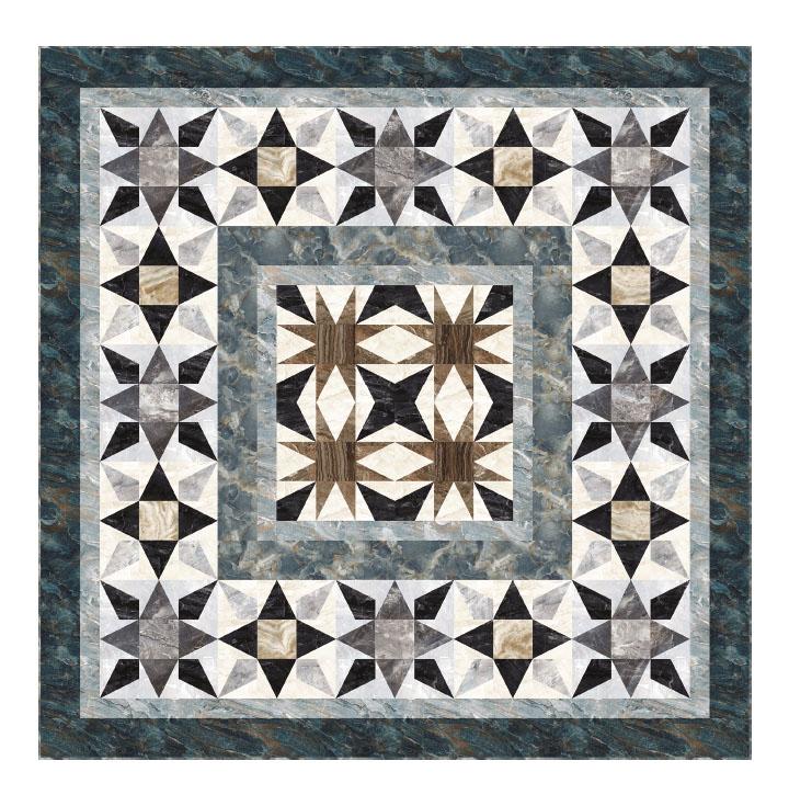 Quilt image features the Stonehenge Surfaces line from Northcott.