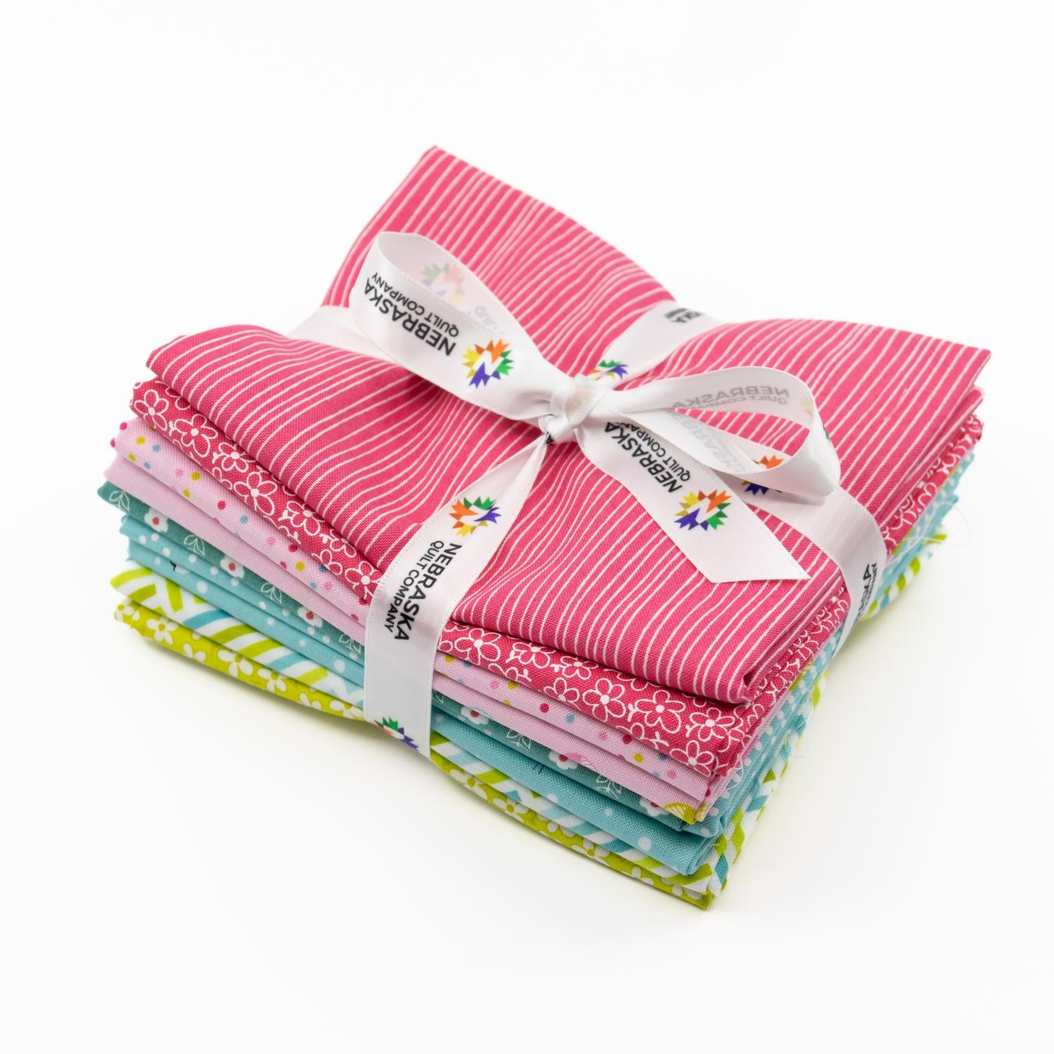 Curated by the Nebraska Quilt Company Team, this 9 piece Fat Quater Bundle is bright and cheerful. Sweet and Plenty by Me & My Sisters Designs brings a grouping of stripes, circles, dots, and florals ina playful color palette.