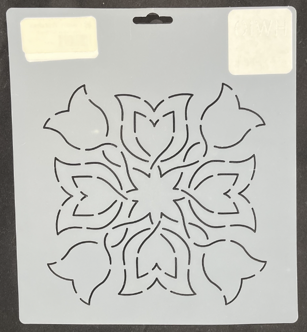 The design shown is a stencil template that is constructed of flexible semi-transparent Mylar plastic which is used for marking quilts and other crafting projects. Stencils can be used for long arm machines, domestic machines and hand-quilting. Stencils can be used over and over again. Made in the USA.